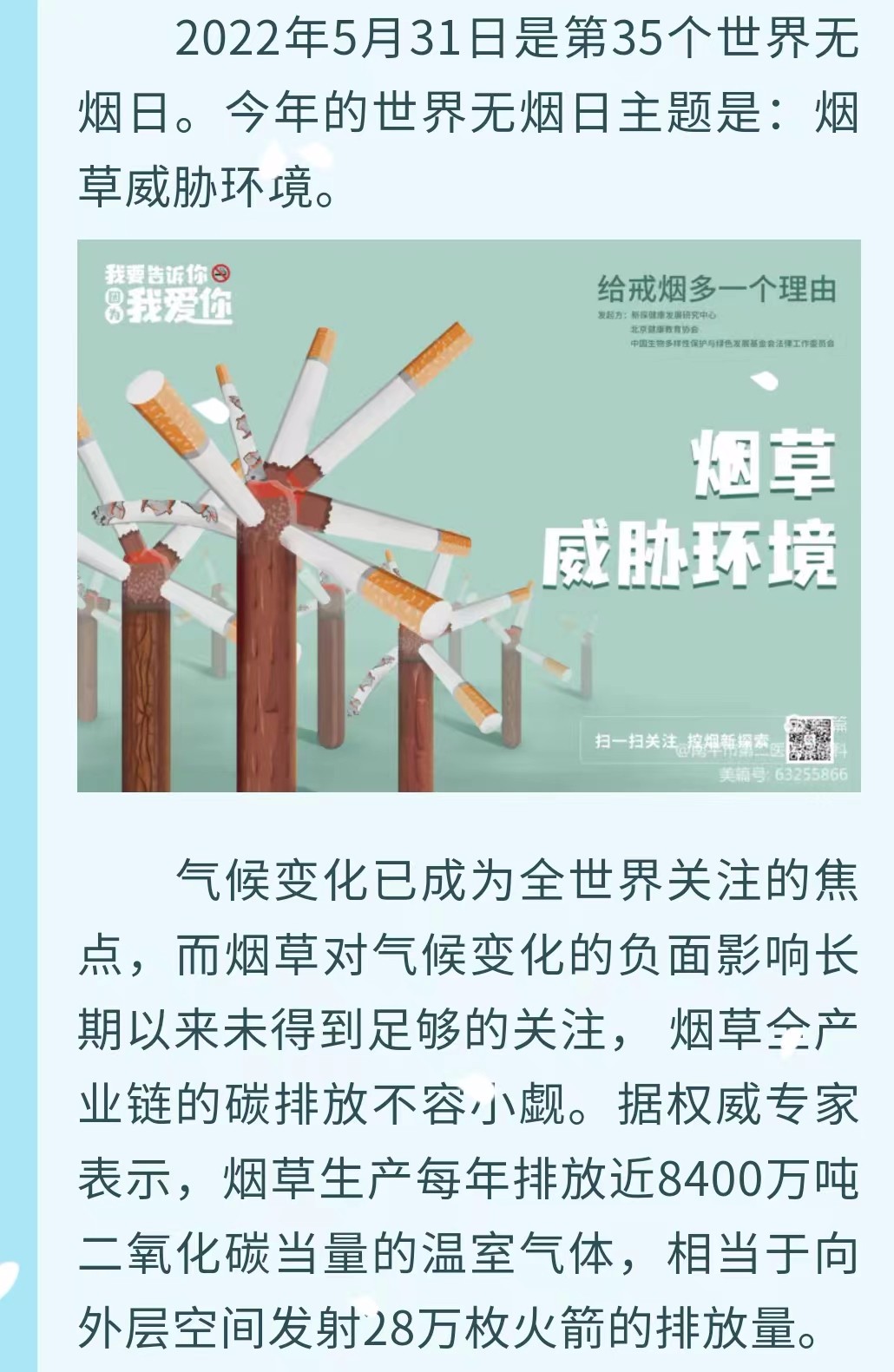 2022年世界無煙日“煙草威脅環(huán)境———給戒煙多一個理由”