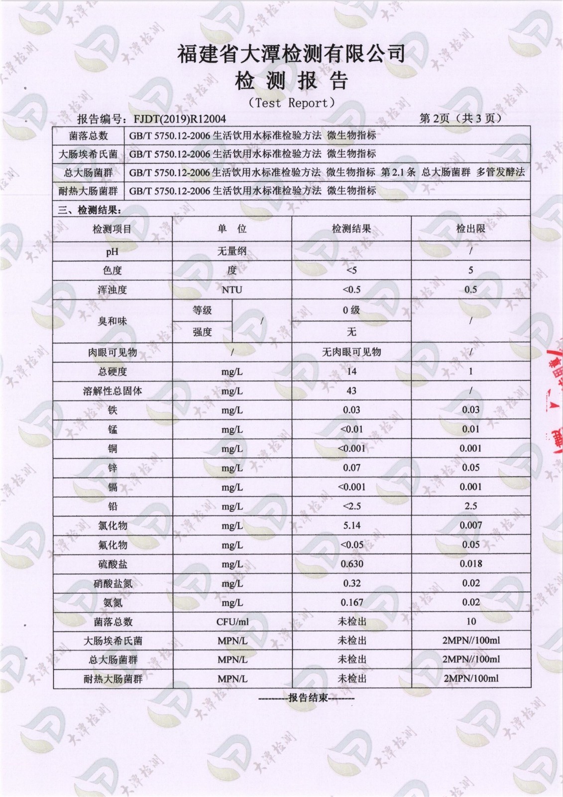 二次供水檢測報告